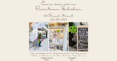 Since 2006, The Alabama Gift Company has been hand selecting and selling the best gifts and foods in Alabama. In August, 2009, we opened a retail store in Historic Downtown Gadsden, Alabama, enabling us to carry a greater selection. Convenient online shopping is available to those of you who can’t make it to vist our store. You can be proud that you have given the best of Alabama! We are constantly adding new and exciting products and we hope you will stop by often. We are committed to complete customer satisfaction. If you are looking for a particular item and did not find it on our site, please contact us and we will do our best to fulfill your request.